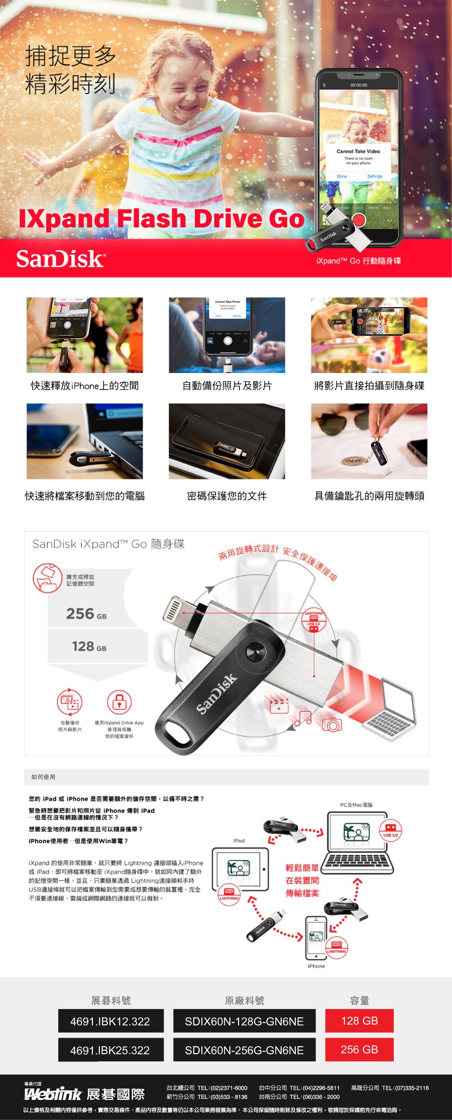 品牌規格SanDisk iXpand Flash Drive Go 128GB (for iPhone and iPad) OTG