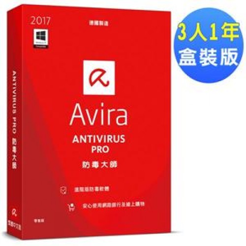 AVIRA小紅傘防毒大師2017中文3人1年盒裝版