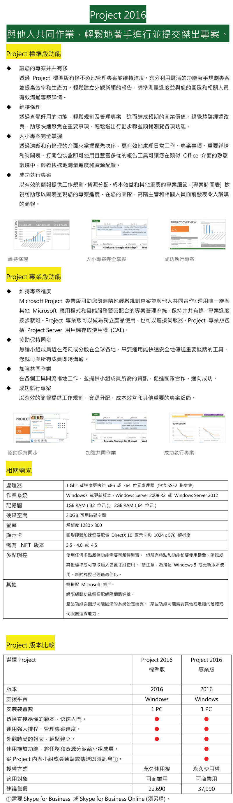 中文 Project STD 2016 標準版盒裝無光碟 PKC