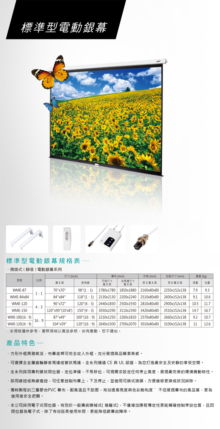 CASOS卡色式 WME-120 120"側掛電動席白幕