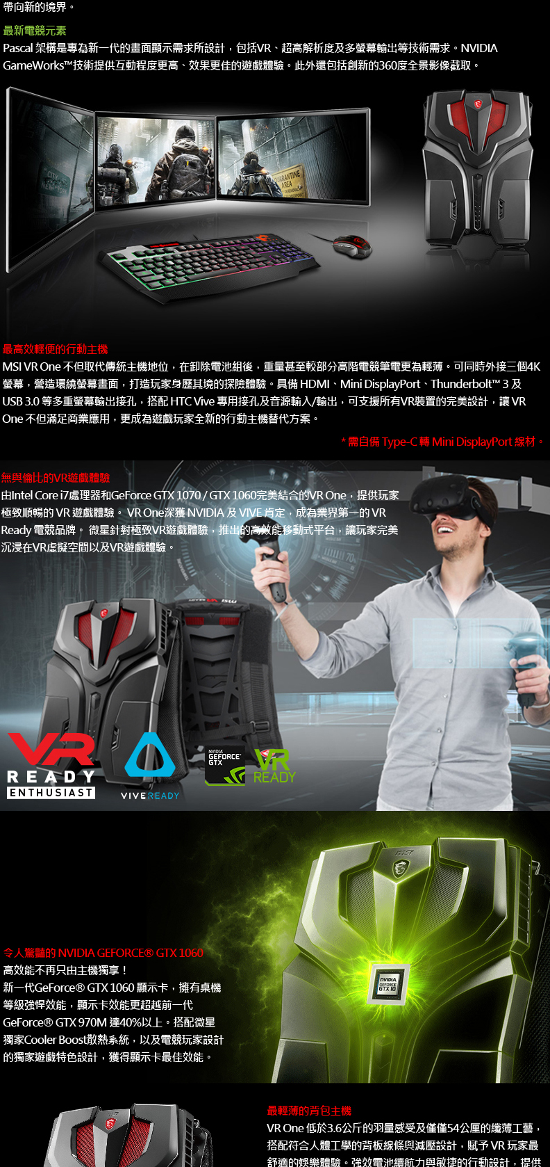 型號: MSI VR ONE 6RD-011TW-BB7682K16GXXDX10P